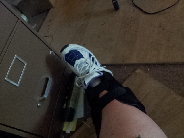 At any rate, I put the brace on and went to work at CET. After standing and walking up and down stairs all day long, my ankle still looked good and didn’t hurt. In the evening I went back to see Julie and she put some kinesiology tape stuff on it. This is amazing!