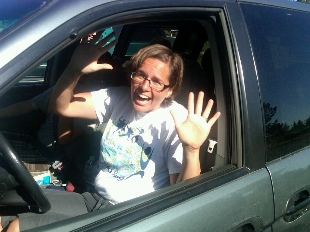 | Anna leaving. I can’t remember how it started but it is tradition that we get a picture of each other pulling out after a visit. LOL. |