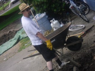 John said a little prayer and Ray came and Noe came and they dug out the place for the sidewalk. They worked all Friday and Saturday, John got up and Ray helped him, and at the end of the day, we had a sidewalk.