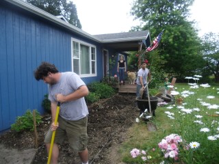 Welcome to this crazy week at the Boyack house. The truth is, I was hardly there. In fact, one day I got to come home early and they all ask why I was there. come on1 I live here! Monday contained the usual chaos. Lilli and I went to CET. I came home to teach a lesson and then headed back to Salem for Family Fun Night at CET. Family Fun Night is when the staff is asked to perform for the students and their families. I was talked into performing. I sang “Housewife” from working. I think it surprised many CET long timers to have a “techie” participate. Even more shocking was that I could sing. Meanwhile, Hannah took care of Case and Chad did whatever Chad does. McKay went to Jamba Juice and then to Singles ward FHE… They spread bark dust for a running trail. someone posted this picture and it made me smile.