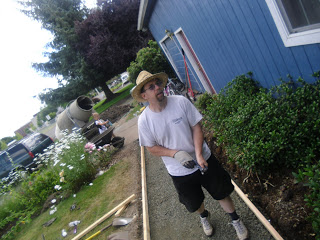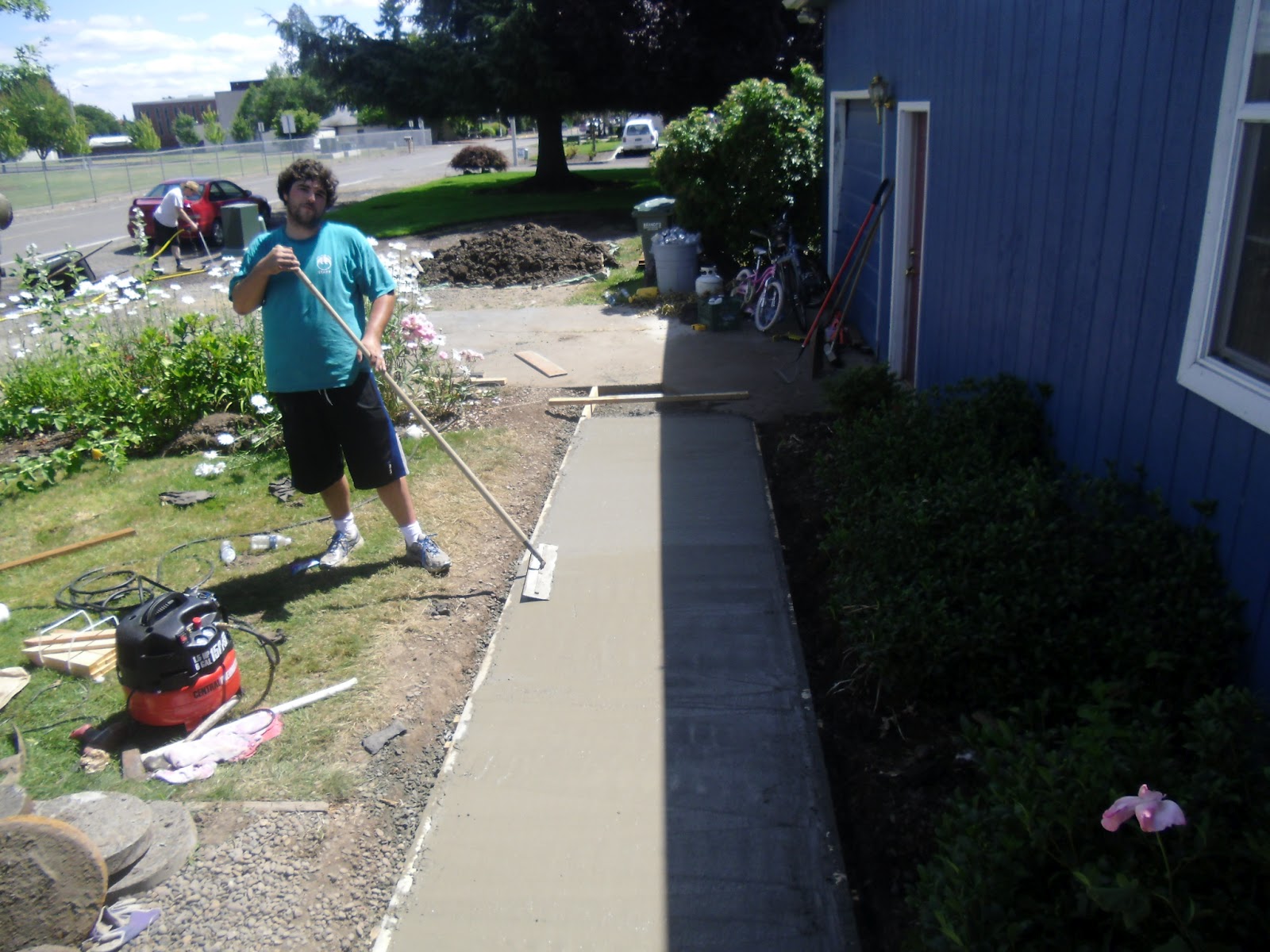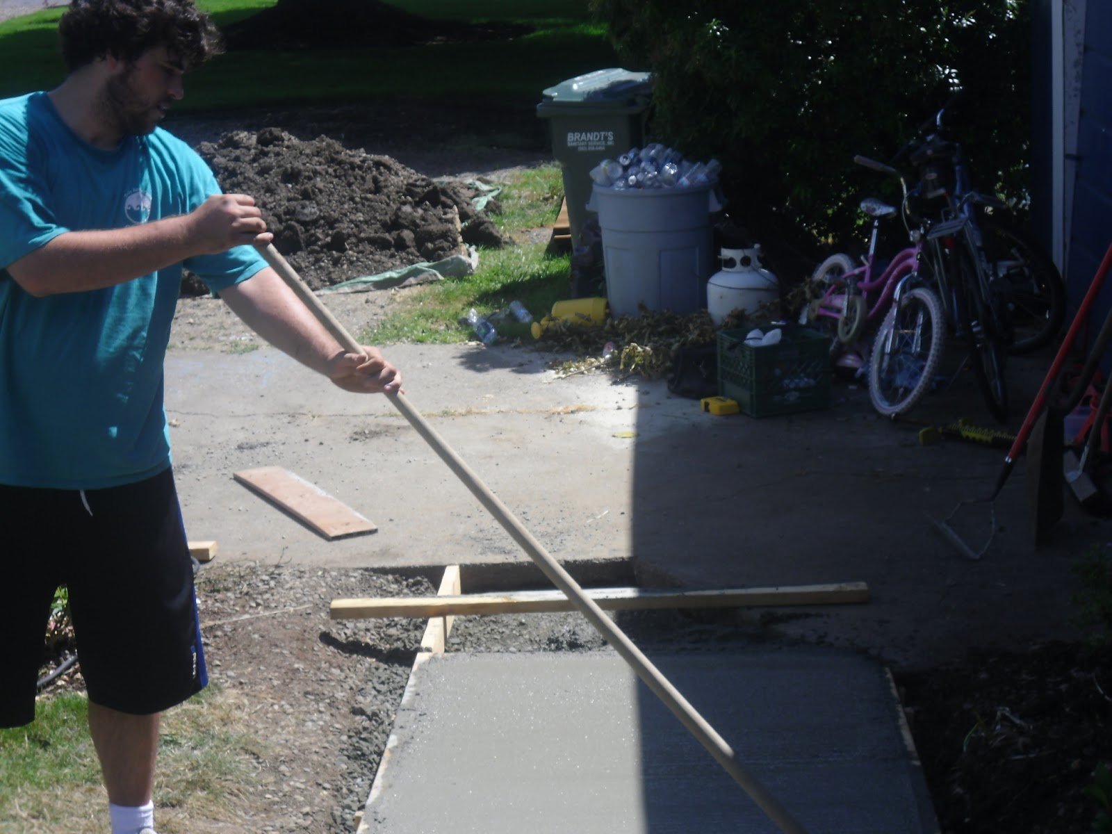 Friday, Lilli and I went off to CET. But John stayed home from work. He was pouring a sidewalk! At first, he didn’t have enough help. Chad refused to help because he liked the rocks and stepping stones. What will he do when he has to move out? He hates change. Won’t it be a surprise when next summer he may be asked to pay rent since he will be officially done with high school and we will no longer be responsible for EVERYTHING in Chad’s life. But, Case tried to help.