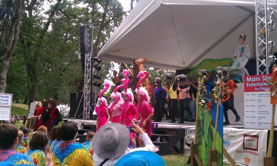 Friday, CET performed our first production of the season at the Arts Fair in Bush Park. The show was “Giraffes Can’t Dance.” This is the set Hannah and Megan painted single handily. It turned out great!