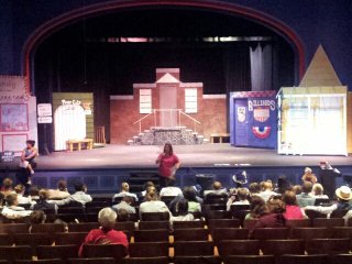 Thursday CET got to watch the musical. It was a little rough. After normal class time, I went to the library show because they broke a set piece. I also had to move half the set to storage and the other half to the Broadway Coffee House. I had to negotiate where to put the set. They wanted me to leave it outside. That just wouldn’t work. Thankfully, the moving committee agreed to help me the next day to get it ready. Meanwhile, there was a drama concerning a set of stairs. A director wanted them, but they were already assigned to the traveling show. She threw “a director’s fit” (I quote her exact description), and we ended up moving them all around town to accommodate everyone. It was all accommodating except for me.