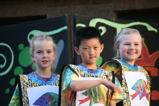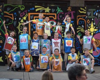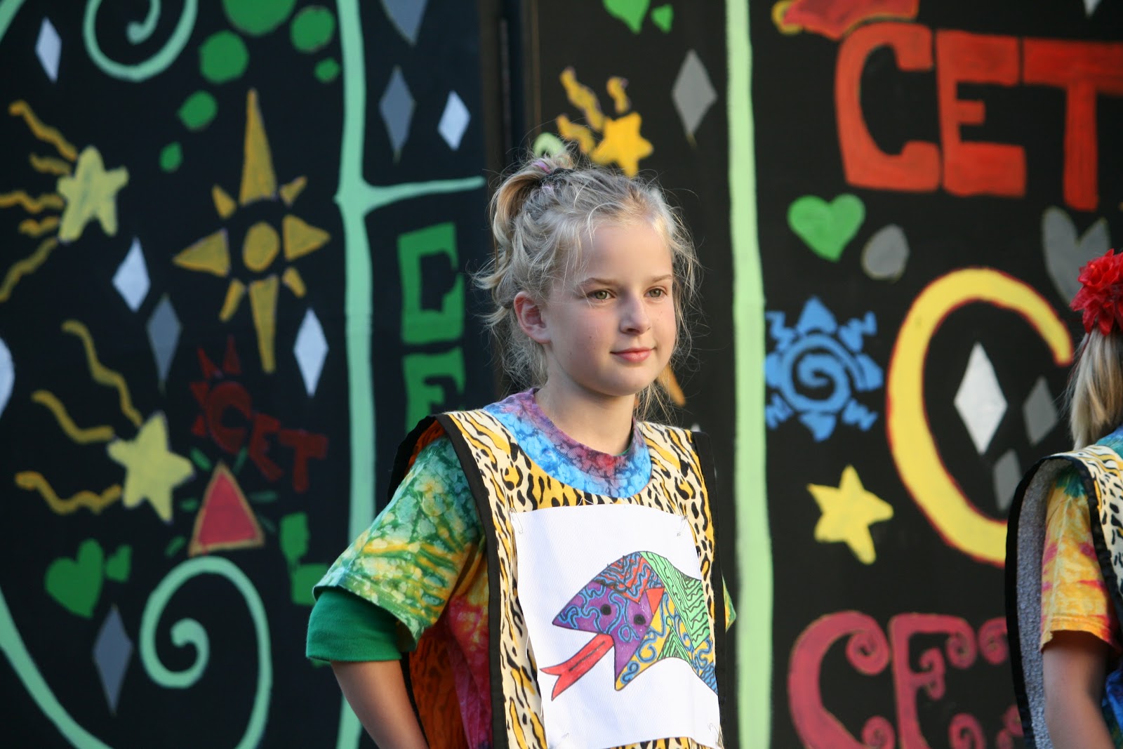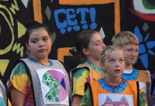 Lillian’s show was written and directed by a sister in my stake, Marian Scaddan. It was Just So, It Happened. It combined the stories of how the elephant got it’s trunk and how the camel got it’s hump. Lillian was a snake in the elephant story. She was a cat in the camel story. They used tunics as costumes. The kids colored the characters themselves. In the end, they got to keep them.