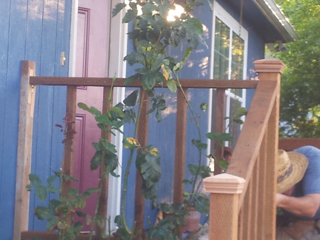 On Saturday we puttered around the house. John worked on putting in a railing and new steps on the front porch. He also moved the large pile of dirt that came from the sidewalk project. He was so dirty!
