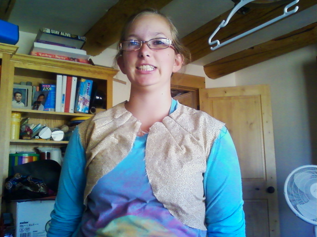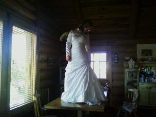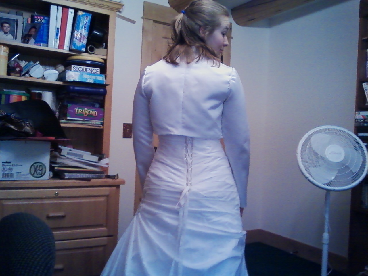 This is the back view without the bustle. Really, we are pretty lucky. We ordered the dress from some place in China and it came on time and it fit nicely. We could not have even bought the fabric for that price… and it’s done!