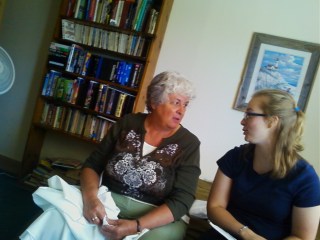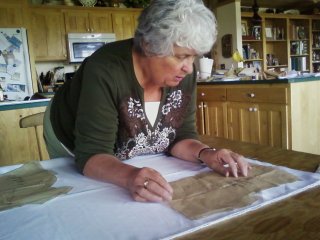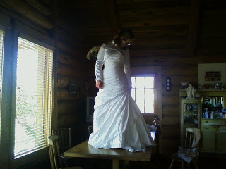 Thursday, McKay and Hannah took a rode trip to Grandma Mabee’s house. (If you are Myles, STOP reading this blog NOW). Their mission? To bustle the wedding dress and to make the jackets that will make the dress temple ready.