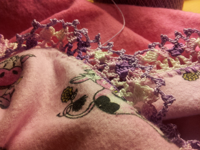 Meanwhile, I didn’t do much most of the week. I sat and enjoyed goofy movies and Mystery Theater and crocheted. I like to crochet and rarely have time. I put this delicate edge on a flannel blanket for my friend Steph and her cute new baby, Olivia. It was a great way to spend the week.
