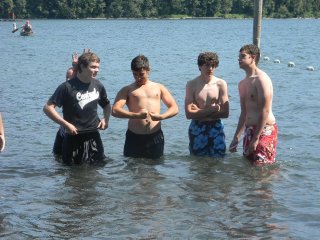 … and swimming in the water. He even climbed the pole that is behind him. He took all his own food so that he could stay within his calorie count. He came home and stayed to watch movies at the Jessop’s. He and Dean got in trouble for pitching apples because a couple of apples got in the neighbor’s yard. The guy must be crabby. He called the police. Yvonne dealt with it. I didn’t even hear about it until the weekend.