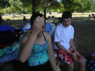 Tuesday, Chad and and Hannah went with the church youth on the joint activity to Foster Lake. I know. Shock. Chad went to a church activity. He seemed to have a good time. He liked teaching Moana to crush cans on her head….