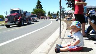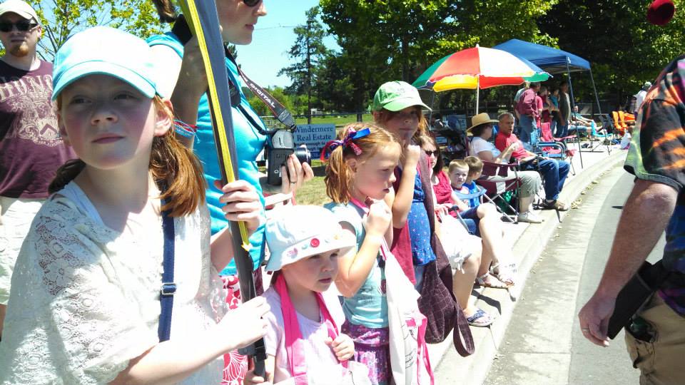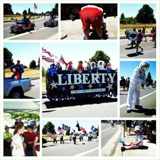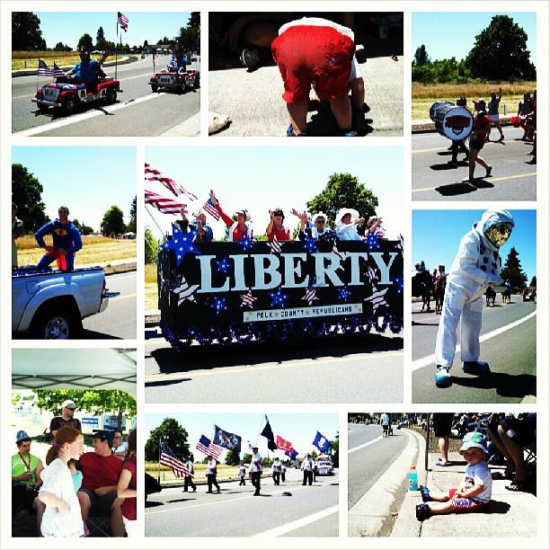 I slept through the traditional 4th of July Flag thing and cinnamon roll thing. I was tired. I can’t eat stuff there anyway. But John and Lilli went. Then we all went down to watch the parade. John had set up chairs and stuff… but he didn’t see the throw up on the ground. We didn’t have anywhere to move to so we stayed there. The Jessops came and joined us, as did the Hiltons and the Wights.