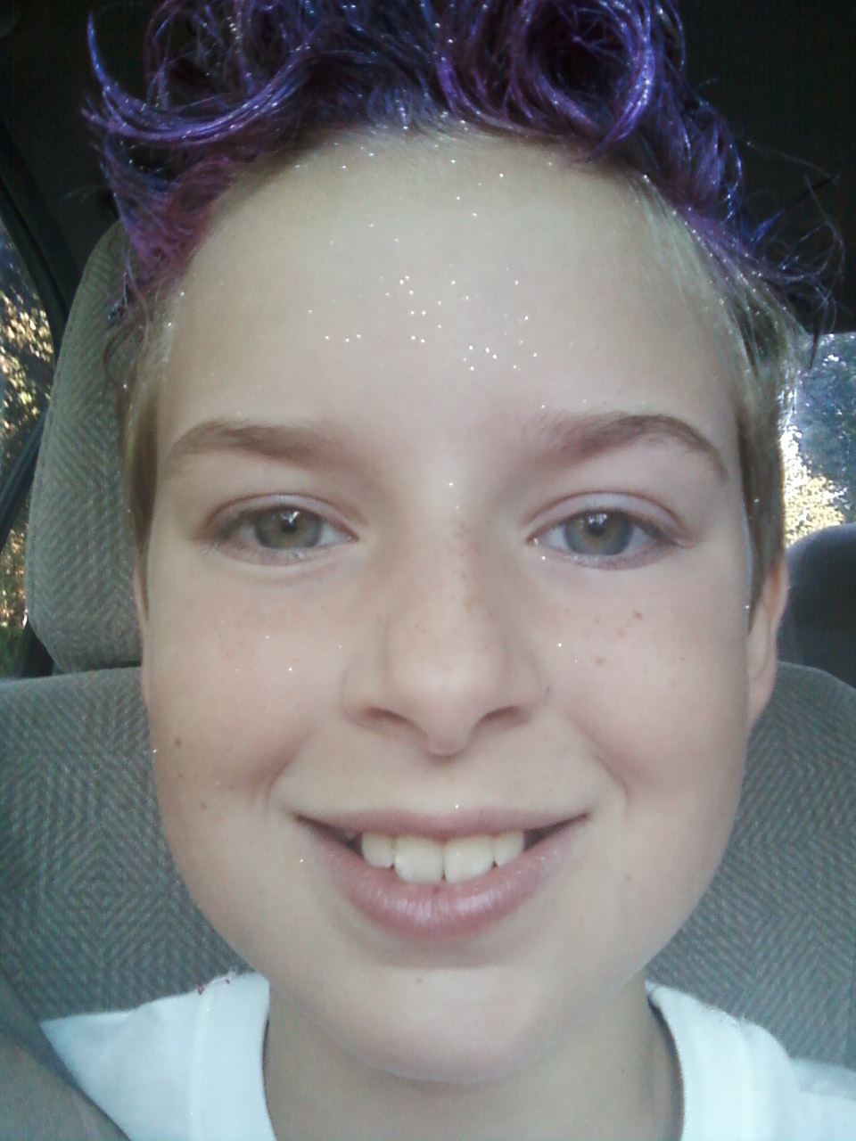 For dress up day at CET Lilli gave herself some crazy hair with gel, purple hair spray and glitter. She even got a shout out in the TA video for the week.