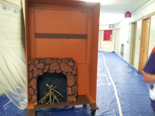 This is how Cinderella’s fireplace turned out. Oh, we used Styrofoam to make the rocks. It needs a little more texture, but I love how it turned out!