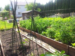 Meanwhile, my garden is growing! We’ve harvested green peppers, snap peas, and raspberries this week. I’m so excited for the tomatoes to come on! I’m glad that it will grow when I’m not home to work with it for a month.