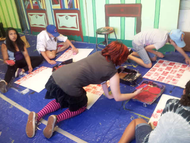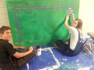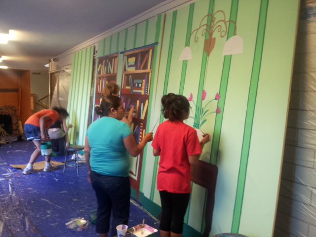 In my painting class I’ve taught them to pain smooth first coats, brick work with sponges, 2 different wet mix techniques, and a feather technique for texture. They’ve actually painted pieces of the set. Seriously, I’ve got some kids that have got some talent… and some that don’t. LOL.