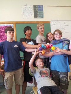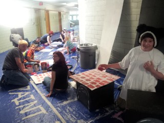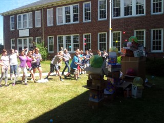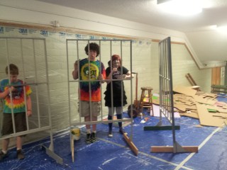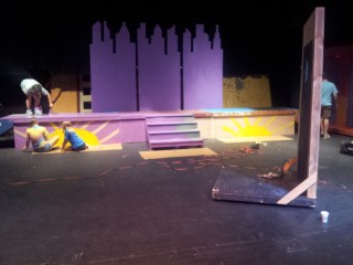 Because we are so far ahead with sets and props we didn’t have any projects for the tech kids to do during our double day. On double day we have all the tech kids for 3 hours instead of 1. We had them work at clean up for one hour and then we needed to come up with something fun so that we didn’t have a revolt. I so a funny game idea on Pintrest and gave it a try… Angry birds Live. We stacked all the old cardboard boxes up and put large balls in the wall. Then we gave the kids small birds to throw. I can now say we are the favorite teachers at CET. LOL. I bet I get 30 more kids in tech next year! LOL. I have the same problem this coming week… what to do with kids that aren’t needed in rehearsal. hmmmm… Guess I’d better start surfing Pintrest again. 🙂