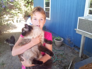 Speaking of cats… Lillian has been asked to babysit a Siamese cat for a month for one of my voice students. Most people at our house are not very supportive. This cat shouldn’t go outside because we don’t want to loose her. Well… while we were out watching Cats, the boys at home left the door open the the cat slipped out. Lillian was devastated when she got home. (She’s been feeling less than supported lately). She cried. I tried to help her look for the cat. Finally, we convinced her to say a prayer. In the morning… no cat. She cried again. This time, John felt guilty and offered to say a prayer with her too. I felt like I should wander over by the chickens since the cat likes to sit in Chad’s window looking at the chickens. Lillian followed me out. We were chatting about where the cat could have gone. John was posting on Facebook that the cat was missing. Missy was circling and sniffing the air. Lillian was sure that the cat was there if Missy could smell it. She started to call the cat and we heard a small “meow”. Lillian screamed with delight. But we couldn’t see the cat. Finally, Lillian looked up. There was the cat… on the ROOF! See Lillian. Heavenly Father answers prayers… and family members are now more careful about leaving doors open.