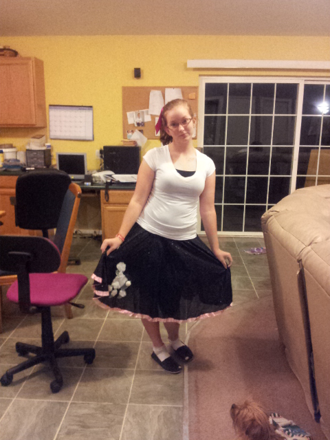 This week was Homecoming week. There weren’t many “spirit days” because this was a 4 day week… teacher in-service or something like that. The first day was 50’s Day. Both Hannah and Chad dressed up. I got a picture of Hannah, but missed getting a picture of Chad. He wore jeans, a white t-shirt, and a leather jacket. I had to laugh when he announced that the leather jacket was great! It was warm. I think it will be his new favorite jacket.