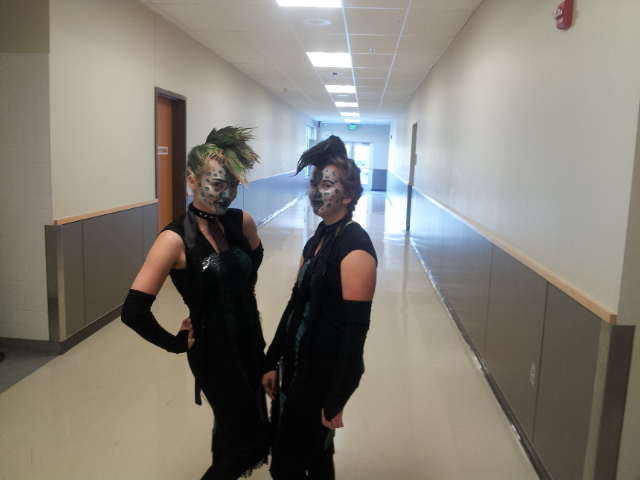 There was no school (and no seminary) on Friday. I got to sleep in until 7! My body doesn’t let me sleep much longer than that. We got a little rain that day. What a relief! It was also the opening night for Little Mermaid. Hannah (on the right) is having fun playing one of the evil eels. Getting her “look” has been a painful experience. The first day that they tried out a hair idea, it took 1 hour and 45 minutes to comb out the rats… and that was using an entire bottle of lotion to make it easier.