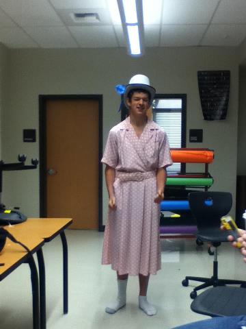 Meanwhile, the out fits that Chad is wearing in public is getting ridiculous. I caught this one on Facebook. The girl that took is at school said they were goofing off. I guess it was a bathrobe or something they found in the ASBEC room.