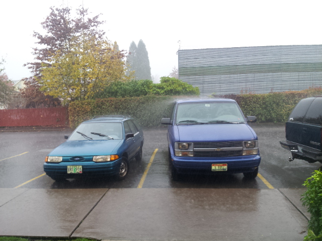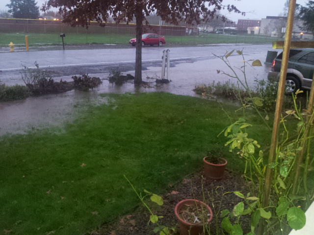 It began to rain harder. It was coming down in sheets! Sometimes it was blowing sideways off the cars!