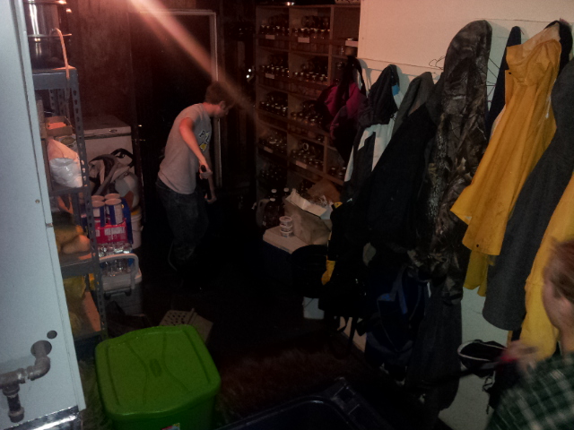 Connor was working hard, “I have to admit that this is the first time I’ve ever shoveled water.” LOL! Sadly, it is not our first time.