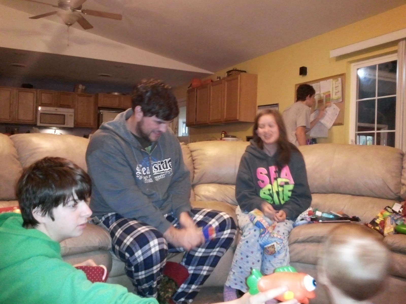 First of all, we did get to keep a couple Christmas Eve traditions. We were coming home from Bend after dark, but we had to stop at the Mickey Mouse House and give our friends the Aldreges a hug, pjs or not. I think Chad was the only one wearing Jammies.