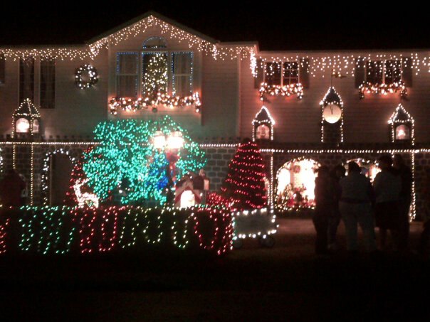 How can we not stop and see this house. These guys do a great job showing the community the Spirit of Christmas. Not only do they have lights and statues everywhere, they collect food and cash for the local food bank. They are such a great example of true community spirit and the Christmas spirit too! Anyway, our tradition is to look at lights in jammies and have hot chocolate as we read the Christmas story. We did it all backward this year. After looking at the Mickey Mouse house we went home and I handed out the new pjs. I didn’t even bother wrapping them. We made Christmas Chili, ate, wrapped presents, and then John did a nice devotional style Christmas story reading. I liked it this year. He added a couple video from the church web site. it was a nice touch.