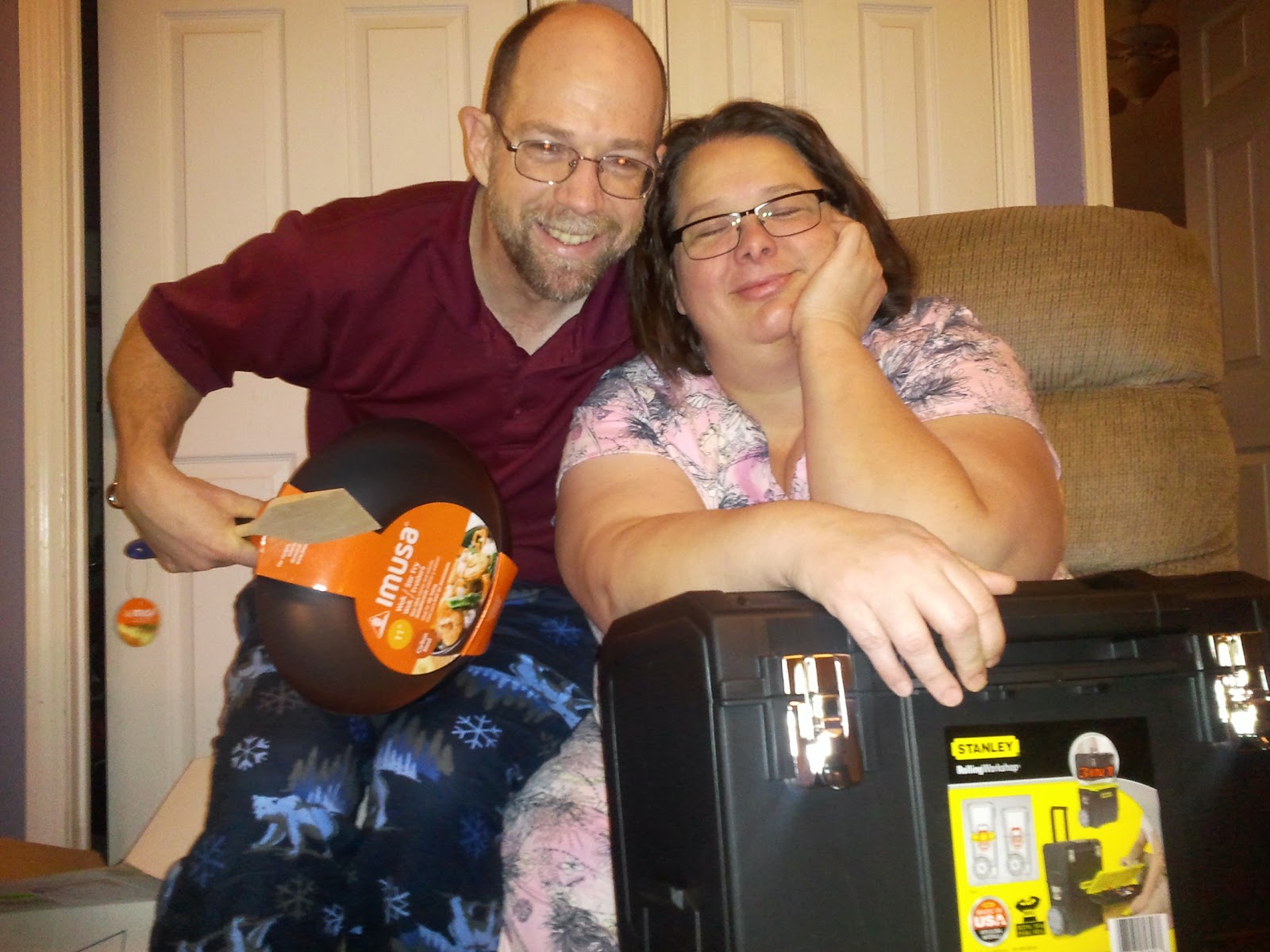 This year John got the “girlie” gifts and I got the “manly” gifts. I got John books and a wok with a proper wooden spatula and potholders. John got me a tool box on wheels and a tool belt of my own. I was pretty happy about my gifts. I can now go to build sets and I will have everything I need. I can also come home to a yummy dinner prepared by John. LOL.