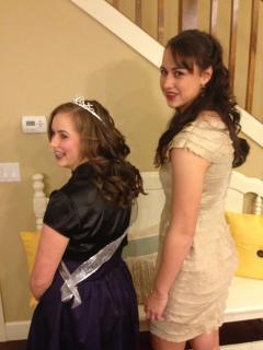 We are lucky to have Megan as an adopted family member and Princess expert. Not only did she get elected to Princess duties in High School, but she was a Disney Princess! She was super sweet and not only took Hannah shopping (I hate shopping and she was wiling to go shopping for Snowball stuff but for Hannah’s birthday present of a fancy non-Wal-Mart bra), she took on the task of helping Hannah with make-up and hair for the assembly… and later the Dance itself.