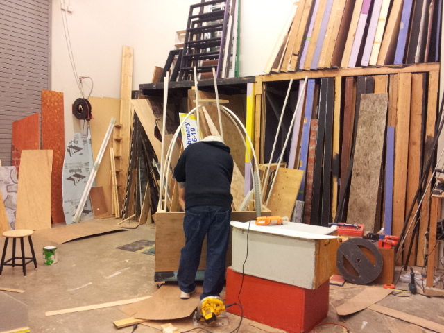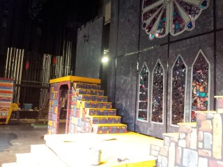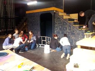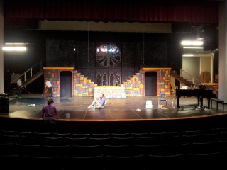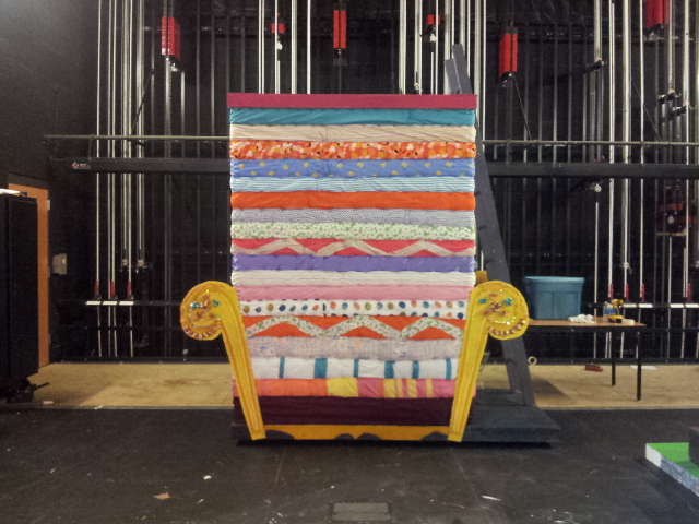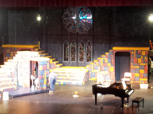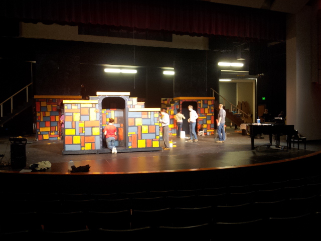 … and added the bed rails to the bed. I’m not to excited to about how the establishments turned out, but I know that Jeff will help me with that. Next Saturday is tech and I will get to focus on sound because the set is virtually done. I just have to add the white squares for the parquet floor!