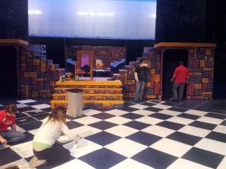 Marathon Day went well. I was able to work out most of my problems with sets, light, and sound. I worked extra hard to make things ready because I knew I couldn’t be there at Monday’s dress rehearsal. What amazes me most about long days such as these is the people that come out of the wood work to watch me run around like a crazy person solving problem and make little comments about the set, lights or sound and the problems I am having! It would hurt to ask to help! It wouldn’t hurt to show up on work days and to help put it all together! Trust me. Standing at the back of the auditorium and discussing how things are 2 inches off center or how the construction would meet OCEA standards is just a great way to make me mad!