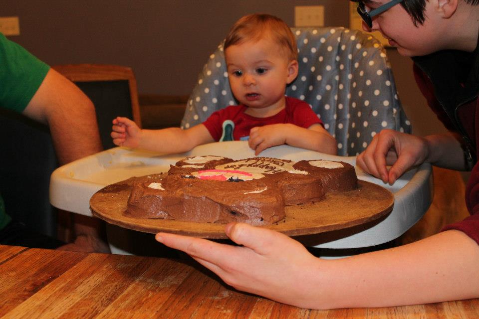 He wasn’t too sure about the cake until he got to eat it. Then, cake was a very good thing. Yvonne made him a cute bear cake. He mostly wore it. He loved ice cream! guess he got it from the gen pool.