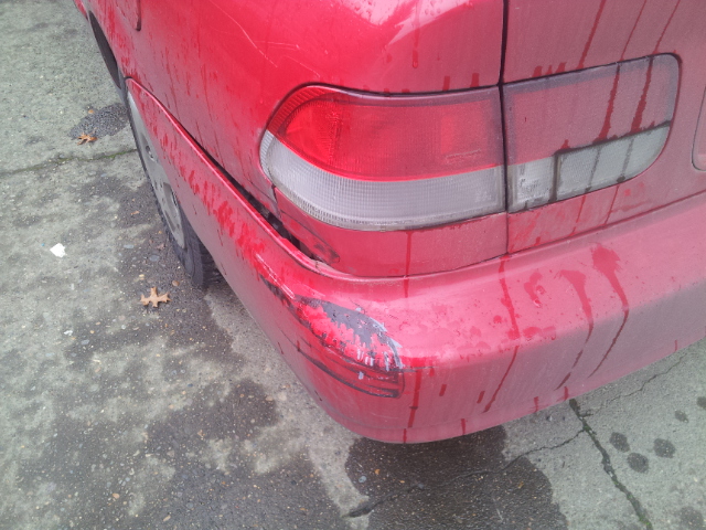 All I can say is that God was looking out for those two. This dent is all the damage that occurred. Nothing happened to the other car. Those two have angels watching over them!