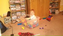 Meanwhile, Kimber has been good enough to hang out at my house with little people while I run around to work at extra jobs, go to doctor and dentist appointments, or cart Chad around. I miss seeing Ben play around here like he owns the place. He likes to sit in the toy box. Silly boy! We bought a baby swing to go in the yard. He cries when he has to come indoors now. LOL