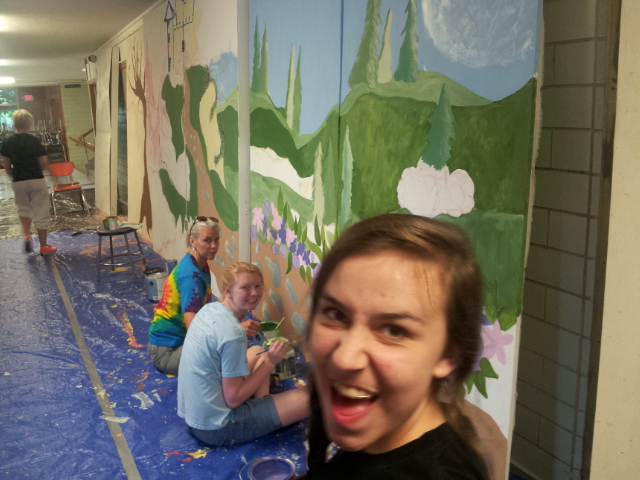 | Hannah and megan almost have the park show finished with paint |