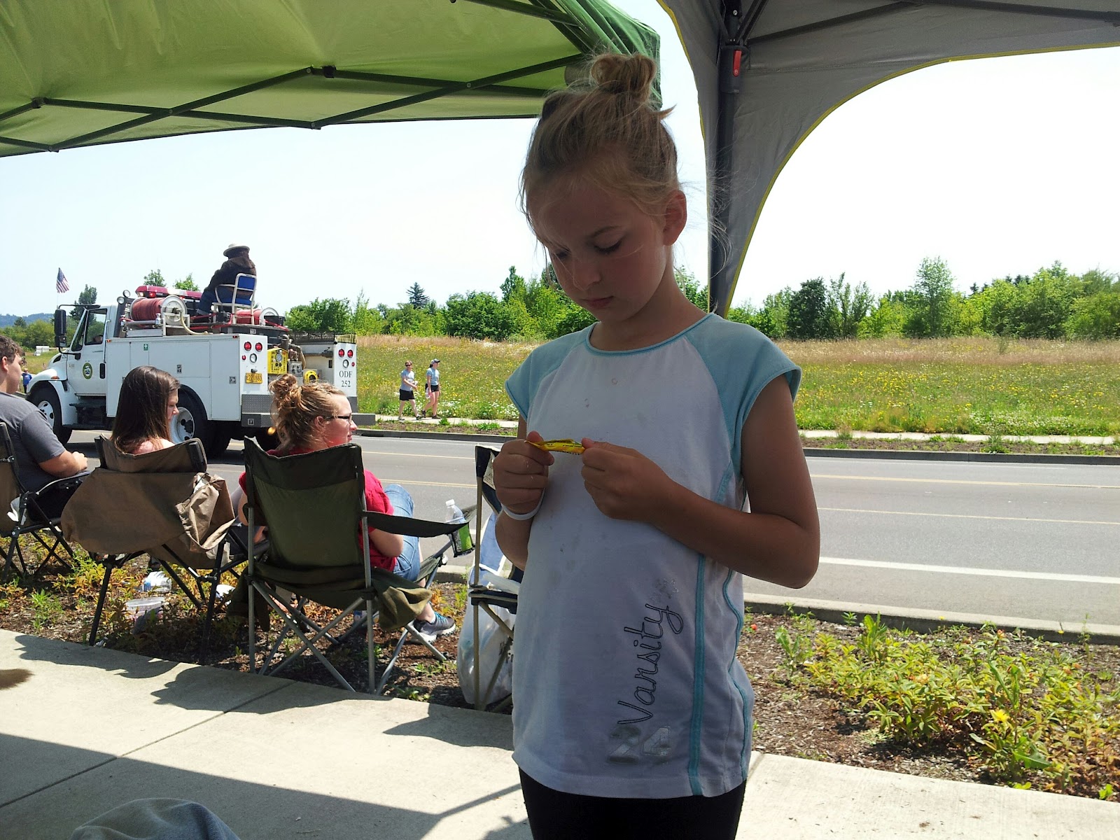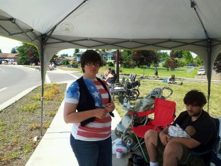 The drugs knocked me out good. I didn’t wake up until 8:45 and missed the traditional flag raising completely. Oops. Then it was time to get some lunch together and find a spot on the parade route. The trouble is, none of my kids are really interested in family things…. Well neither is John. Chad and Hannah went with the Jessops to visit Michael in the hospital and the sat by us for the parade, then they went off on their own to see the booths and stuff around town. Kimber and Ray sat by us for the parade and then did their own thing for the rest of the day. McKay sat by us for the parade and then worked until 9 at Jamba Juice. Lilli had a little down time before heading to the park to play. John went out and did yard work. He isn’t really interested in all the festivities. He only went to the parade because I guilted him into it. After a few chores at home, I went to work in the park for the rest of the evening. John joined later and took tickets to earn money for the Senior all night party. McKay found us after work and watched the fireworks with us. Kimber and Ray and Ben sat up on the hill by the sound booth. Meanwhile, Lilli made a little friend named Scott who tried to teach her how to ride a unicycle all evening long. Chad and Hannah spent the evening with the Jessops. Sadly, Chad doesn’t want anything to do with his parents…. Except our money. Sigh.