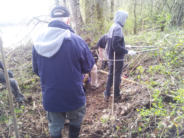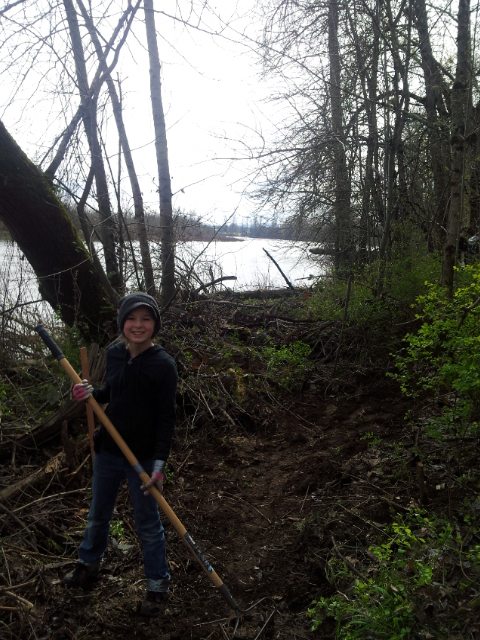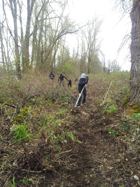 This really will be a nice trail when we are all done. I think I may even go down in the summer for long family walks… well Lilli and mom walks. Most of the others guys are too busy or ornery for family things. The good thing is, after several hours of work in the undergrowth we were all poison oak free. We did wear gloves. We did tape shut all parts that might be problem areas. We did bath in Dawn dish washing liquid. we did strip next to the washer and run directly to the showers. We will be working on this a few more days… I’d say Saturdays, but Chad is making this a little difficult for adults and working people to help him.