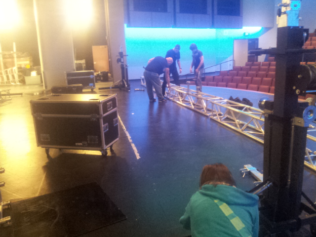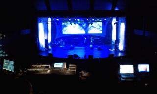 They arrived early and started setting up a utility trailer full of lighting trusses and lighting instruments. After a couple of hours the sound rental company arrived and started their set up. It wasn’t until after lunch that they finally started a sound check and their 17 year old lighting director started amending his light cues. I thought my job would be easy since they were “bringing” everything they needed. Not. I was a police officer… don’t park on the landscaping you are breaking the irrigation pipes…. using our spotlights will cost you more money… please stay out of other areas of the school because school is still in session…. what are you doing to our sound system…. please down walk on the seating… no food in the auditorium… you need internet? that would have been nice to know… the generators are causing problems breathing… no we can’t add more chairs, the room is rated to 599 occupancy only… After a long day of set up and policing their every move the show was ready to begin.