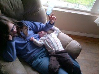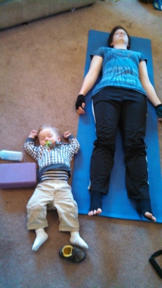 …. practicing yoga with mom… he’s got “dead man’s” pose down!