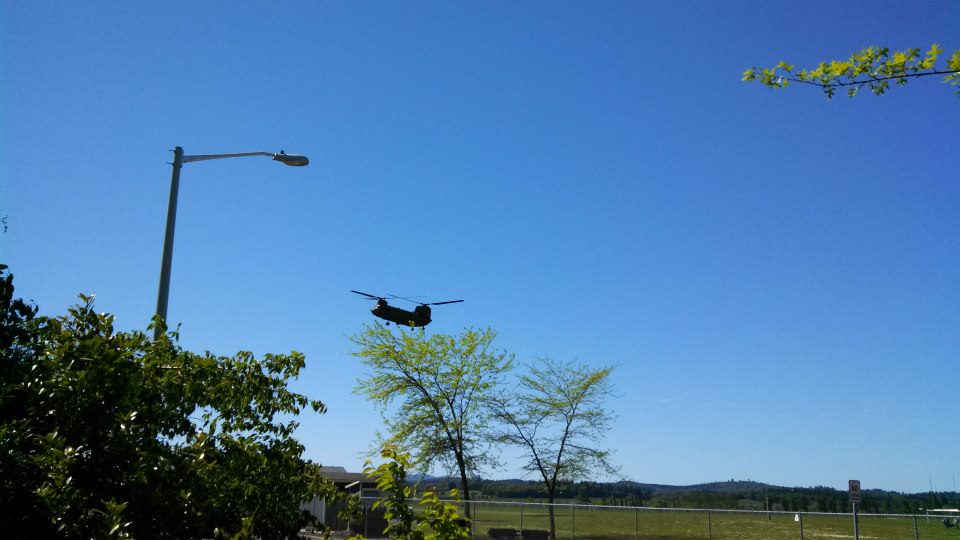 The last interesting thing in the last couple of weeks was the helicopter that landed in the field across from our house on Sunday. I heard it fly over us. It was loud. But the sound continued. I couldn’t believe that no one was investigating. So I struggled out of my chair and walked out onto the front porch. After I announced it was there, everyone jumped up to see. A bunch of army guys got out.
