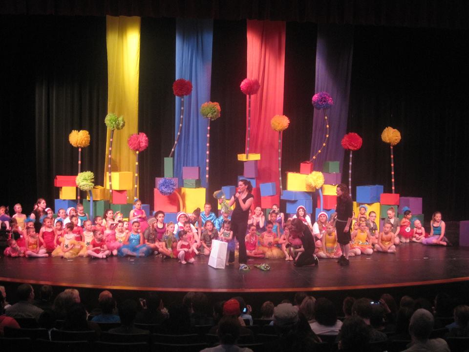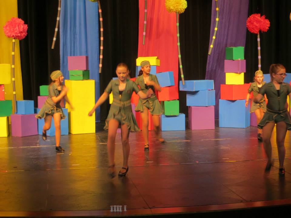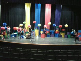 I really liked Janey’s set idea for this show. She painted various sizes of boxes in primary colors. She made Dr. Seuss trees out of tissue paper and pool noodles. We hung them from a batten It was really cute. I helped pay for Lillian’s classes by recruiting Hannah to run the light board and Kimber to run the follow spot while I ran sound. There are videos on Facebook of the dances, but I don’t know how to link them to my blog so you will have to go look them up if you want to see Lillian dance.