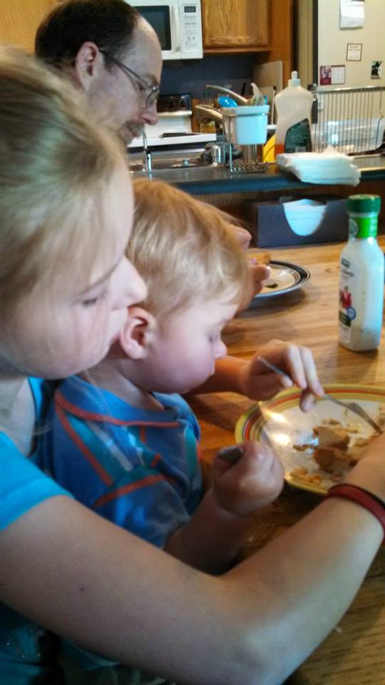 Oh! I forgot. Ben has adopted a new habit…. very reminiscent of his Aunt McKay… he will only eat if he is sitting on someone’s lap… well, at least at my house. He wants his own fork… but he wants your food. sometimes he even wants the food on your own fork!