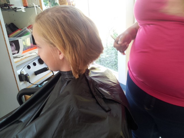 This week Lilli got a new hair-do. She was growing her hair because she wanted to audition for Mary in The Secret Garden. I told her that Mary needed long hair. She loves short hair and has wanted to cut it for awhile, but decided it was worth growing it if she got the part. Surprise! She shares the part of Colin! So the hair got to go. She was SO excited!