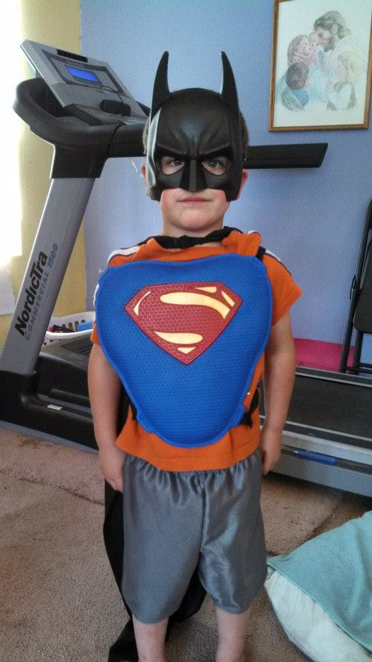 This was a big week for Case. He got glasses. He really needed them. The poor kid really could not see so well. It took him a couple of days to get used to them. It is hard to adjust to actually seeing what you were doing. He had a little trouble navigating at first… he was running through the house (grrr) and he hit the door frame… but he eventually got the hang of things… THEN… he went outside. When he went outside he had his glasses. When he came back in… he didn’t. They were bugging him so he took them off. Somewhere, in the black hole known as my back yard, is a pair of glasses that Case got to wear for less than a week. GAH! We looked for hours. Today we mowed the yard. No glasses. So say a little prayer. They have to show up some time. Right? Meanwhile, we will continue to cover all our bases in the Super Hero department.