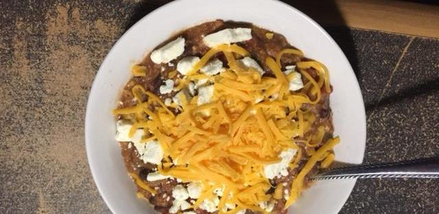 - Uncover and enjoy. You can top it with tomatoes, avocados, cilantro or more cheese. I topped this one with a mixture of vegan mozzarella and cheddar cheese. My family enjoyed eating it like a bean dip with chips.