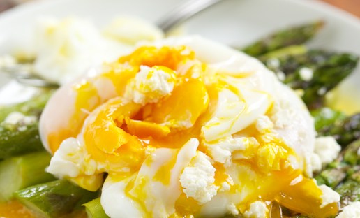 - Layer grits, topped with asparagus mixture and 1 egg on a dish. Serve and enjoy!