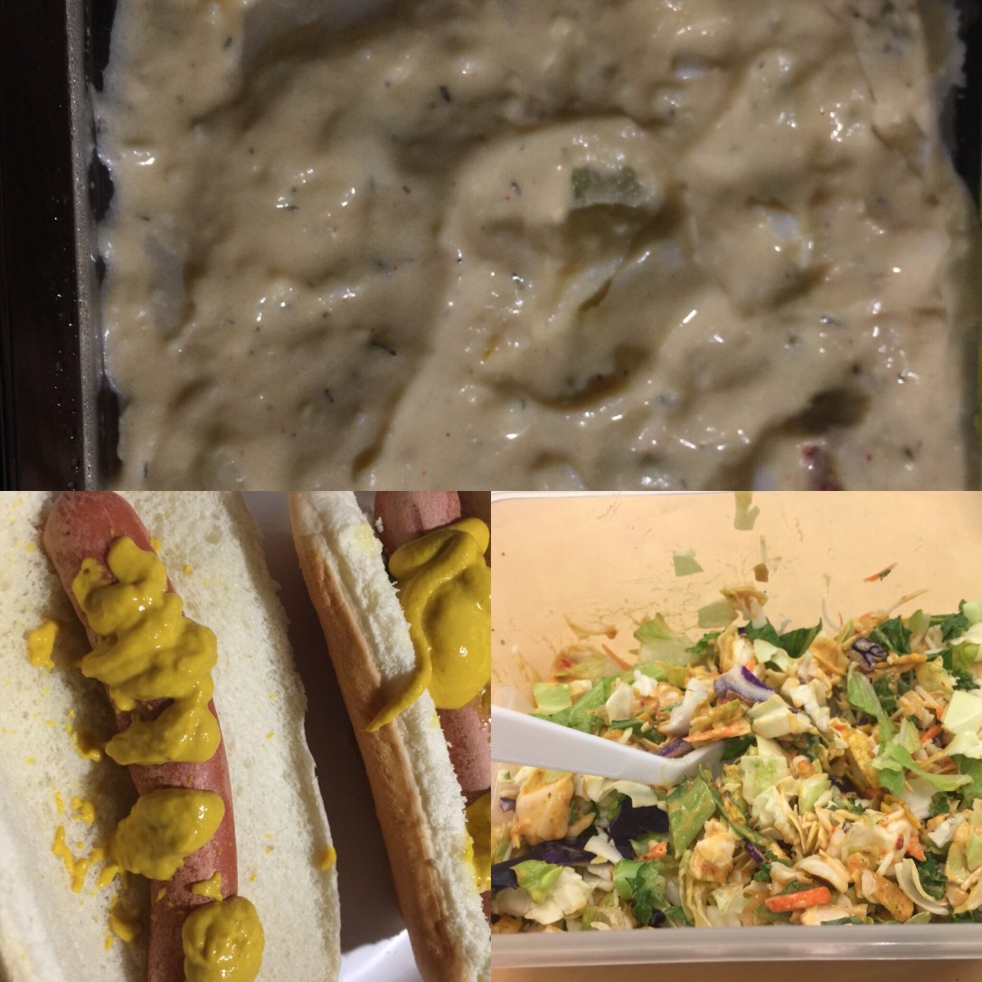 Monday was a busy day. Again, I had a veggie hot dog and some potato salad. I had a salad for dinner and some chili I forgot to take a picture of.