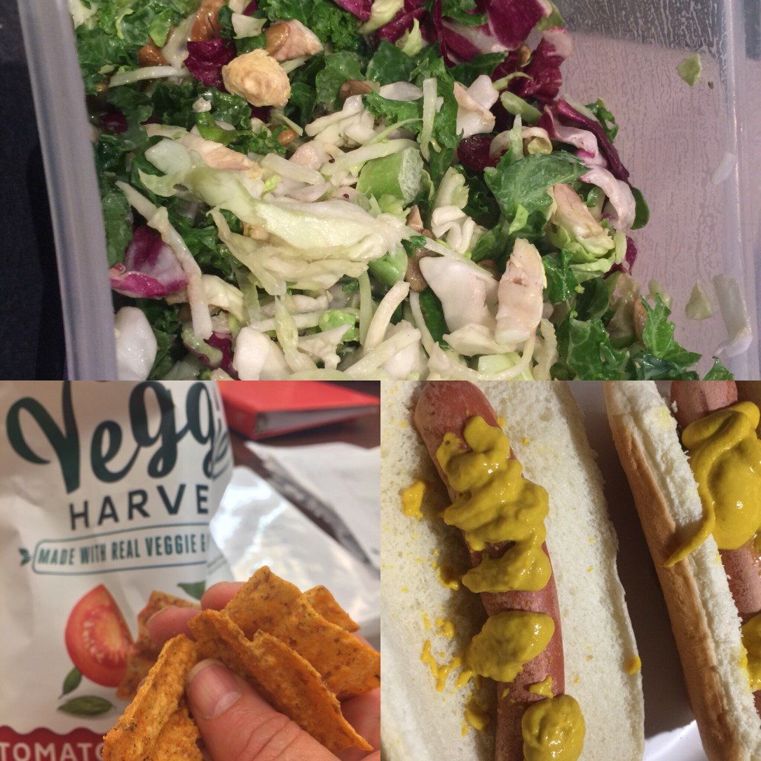 The next day I had a salad for lunch with a few chips. It was a long day so I made a couple veggie hot dogs when I got home.