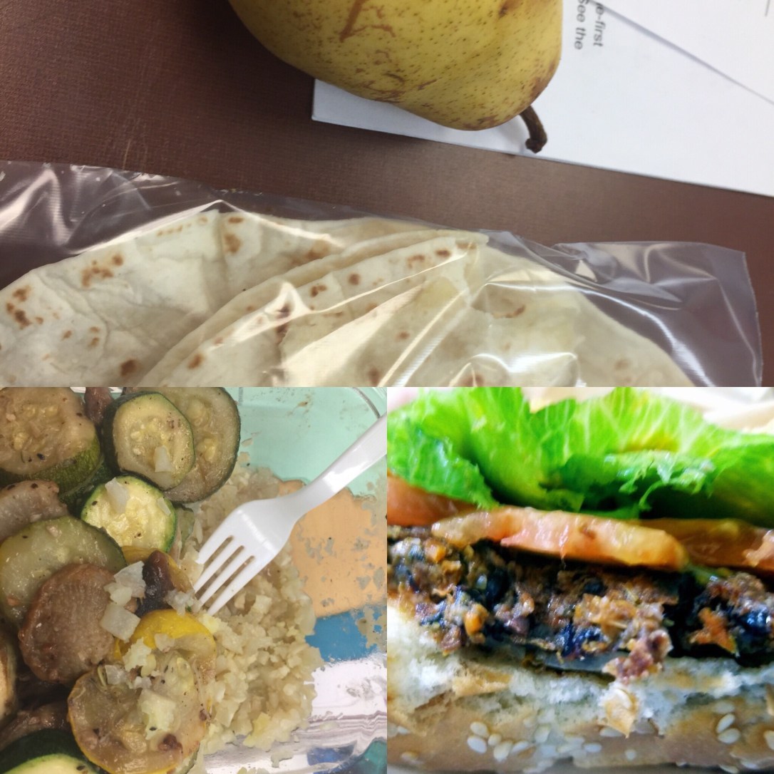 The next day I made a quisidilla with veggie cheese, and some sautéed veggies for lunch. I had a veggie burger for dinner.